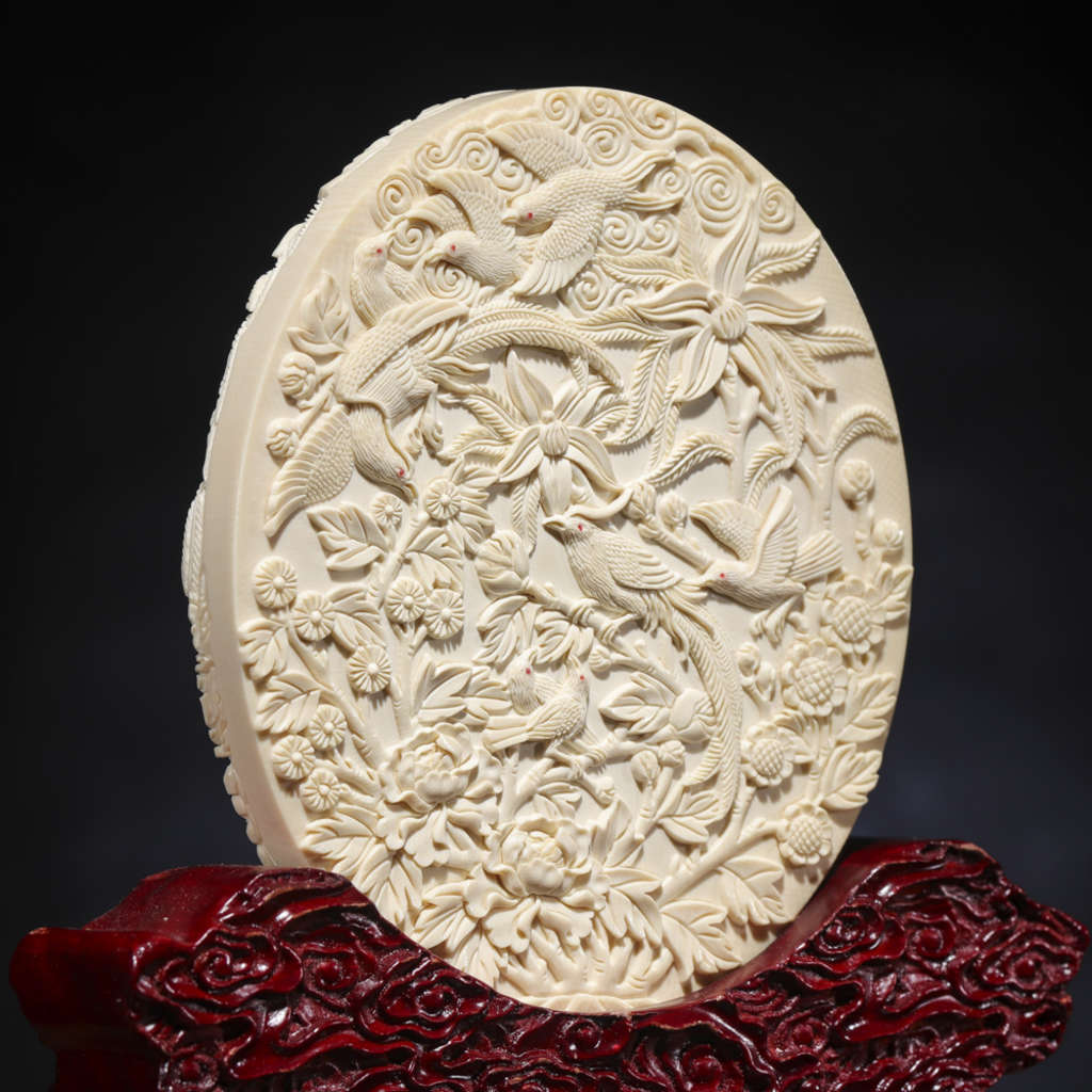 【猛犸牙雕作品】《百鸟朝凤》灵性十足 是一件非常适合摆放鉴赏的佳作